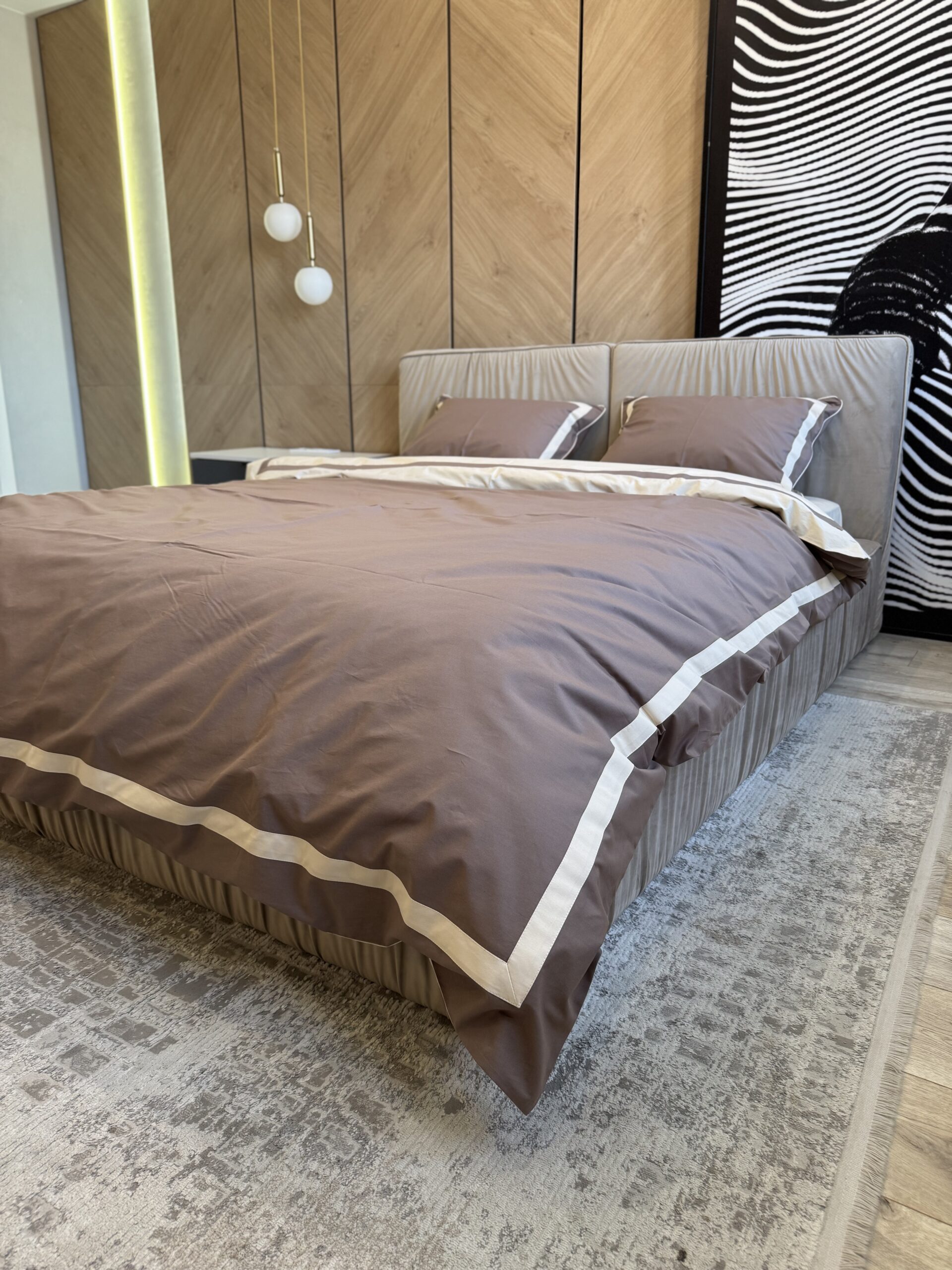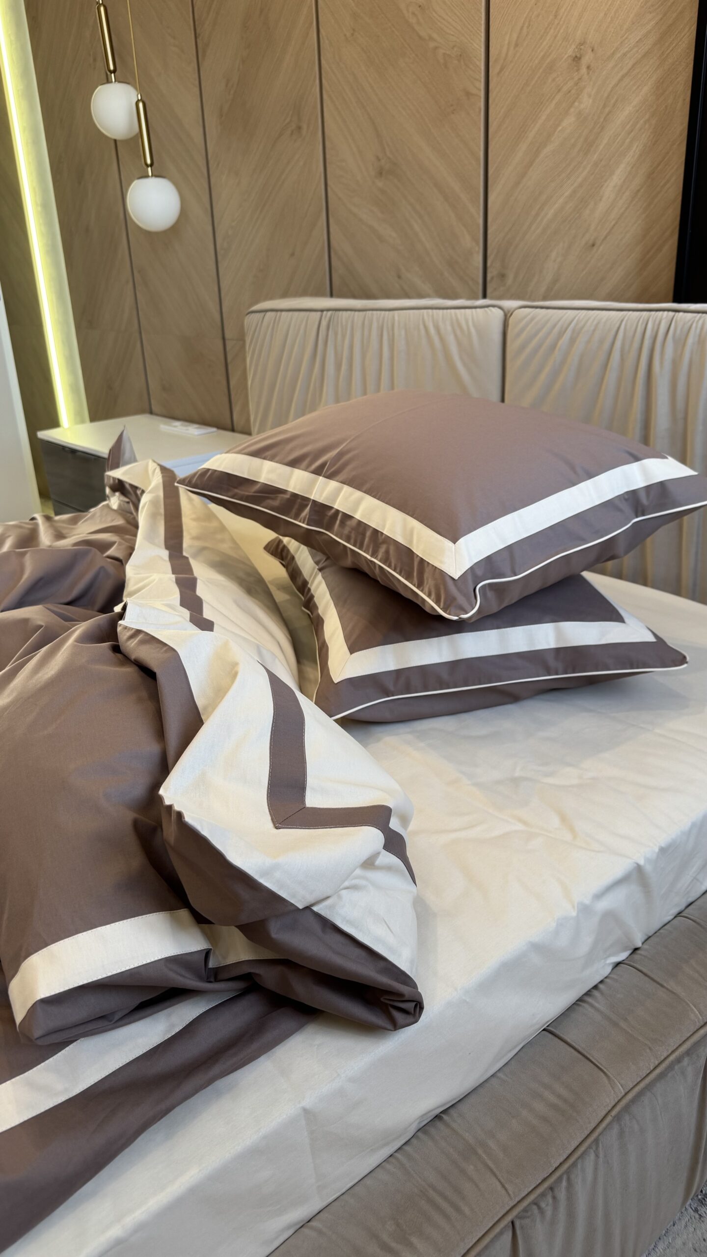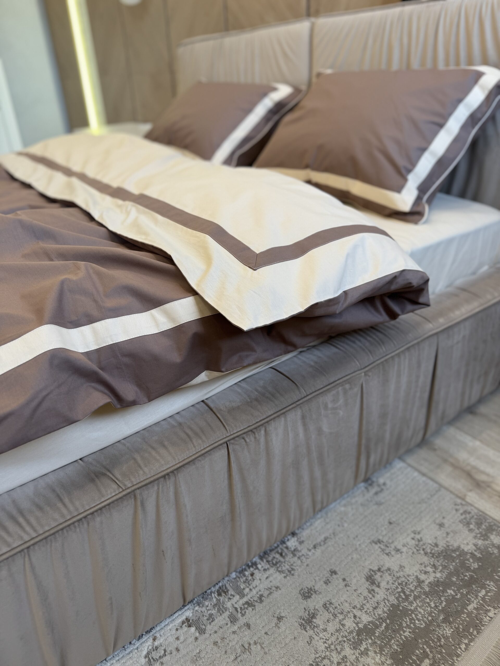 Matte Premium poplin bedding (Latte shade in combination with milk + edging and wide stripe)