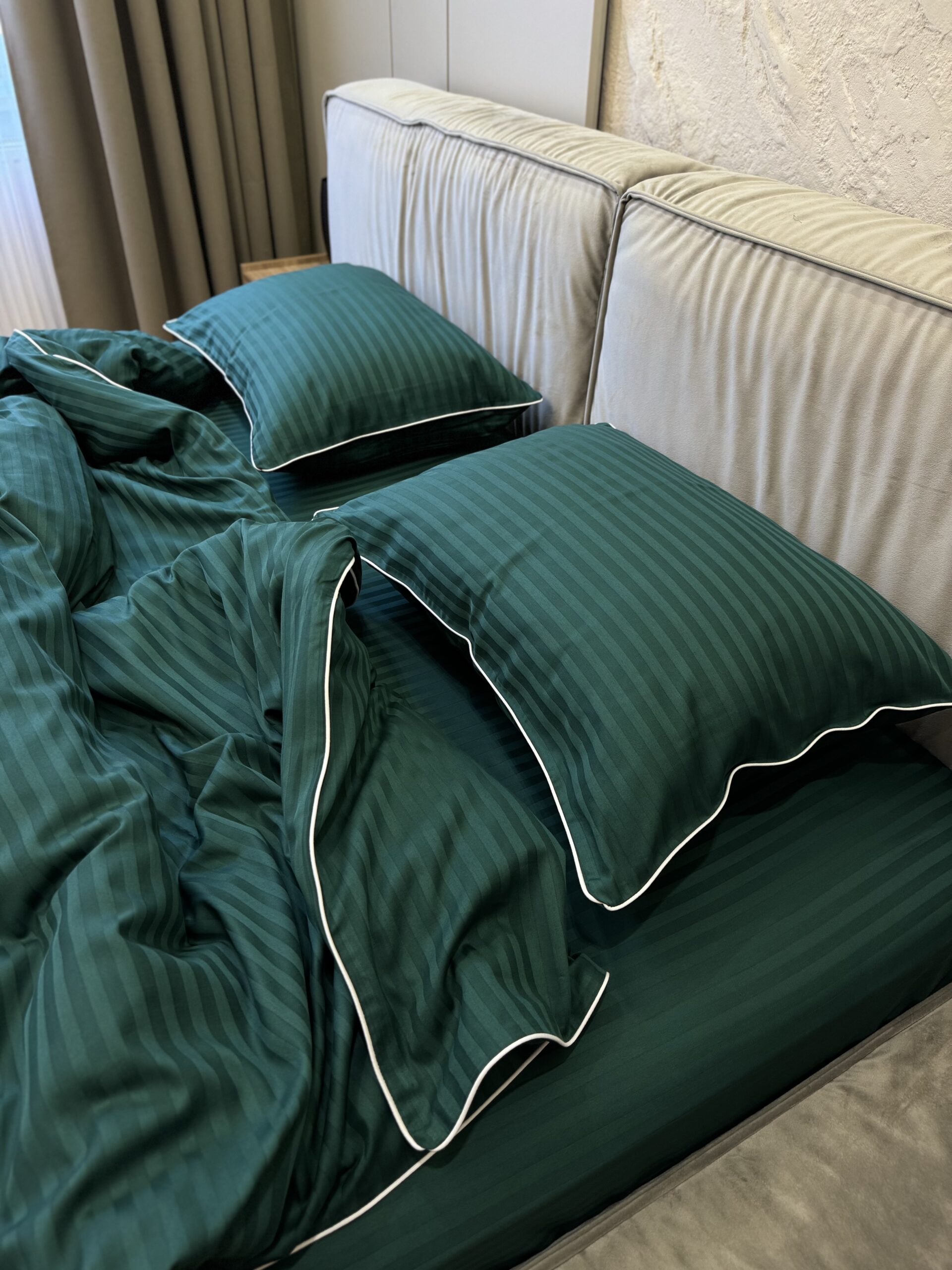 Premium satin bedding with edging (Emerald shade)
