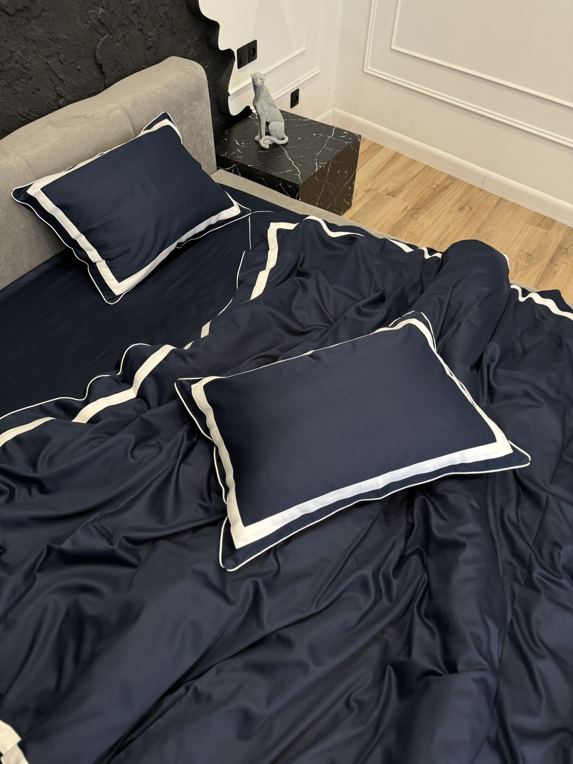 Łóżko satynowe Premium w paski (odcień ciemnoniebieski)