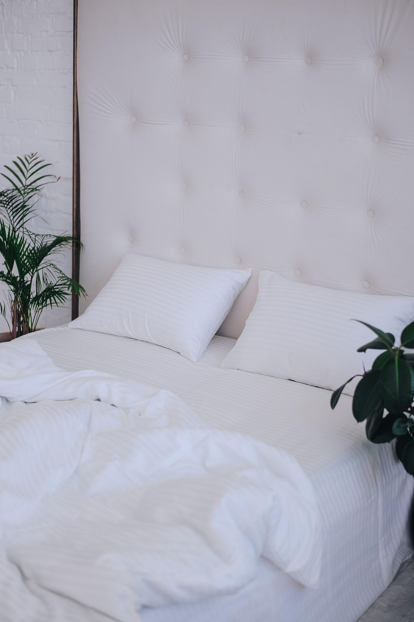 Pościel satynowa gładka w paski (odcień biały)