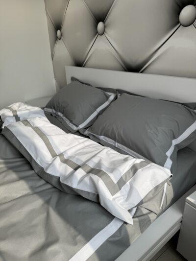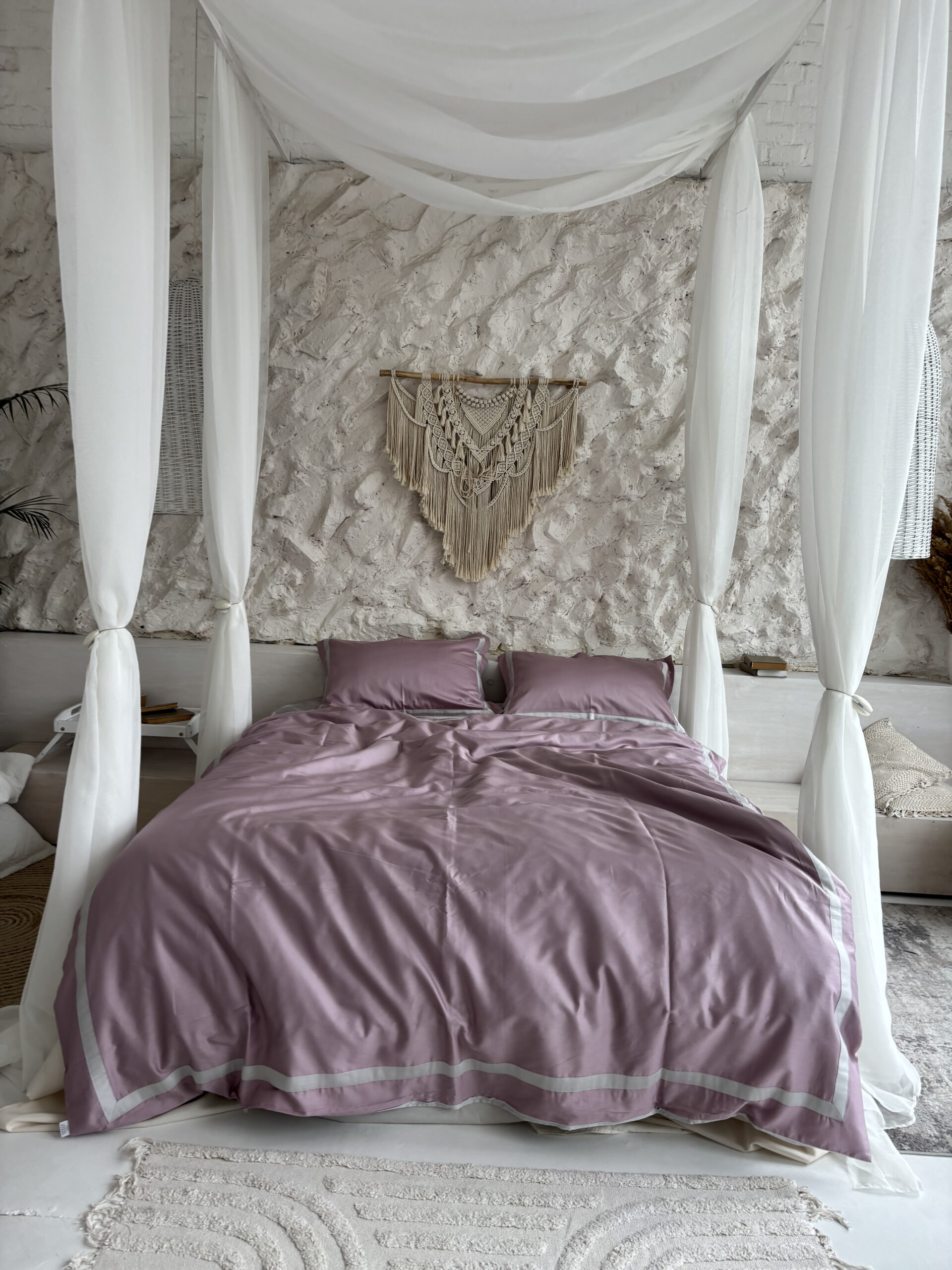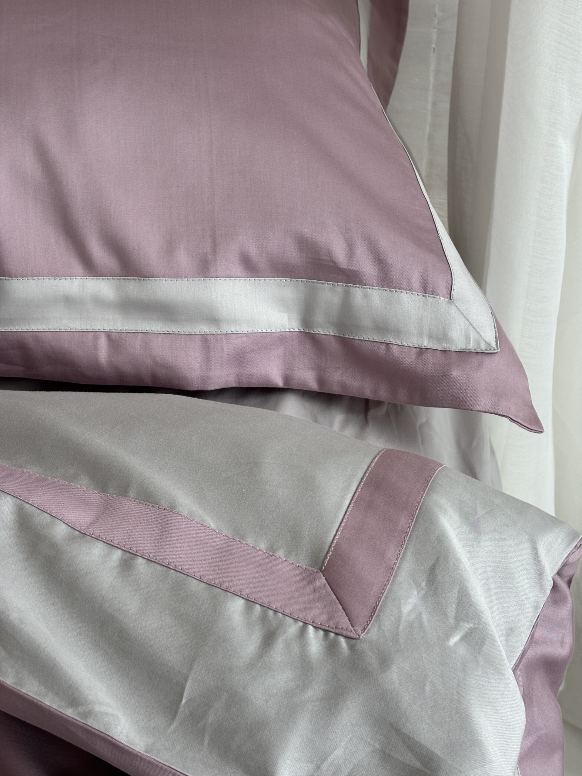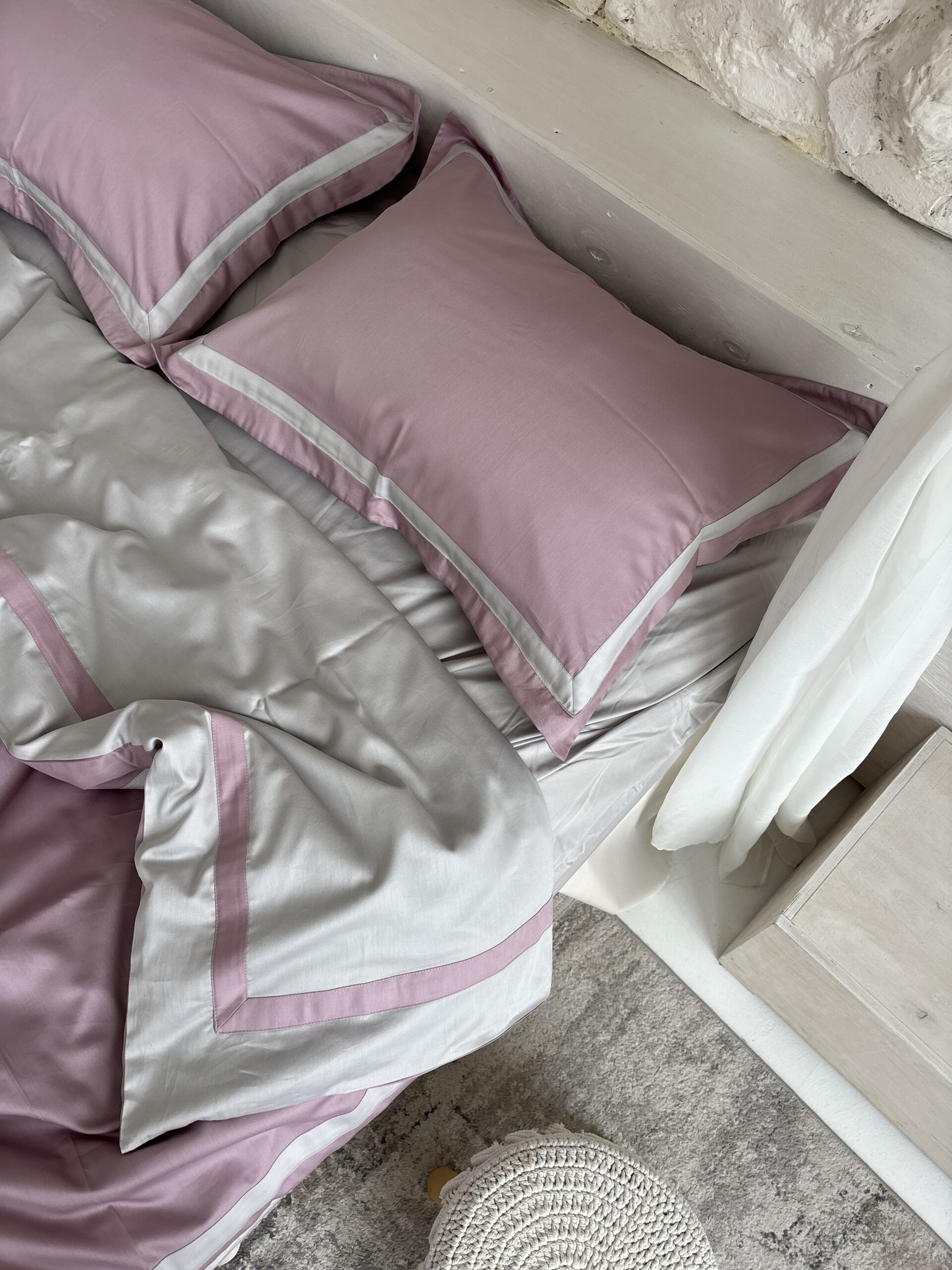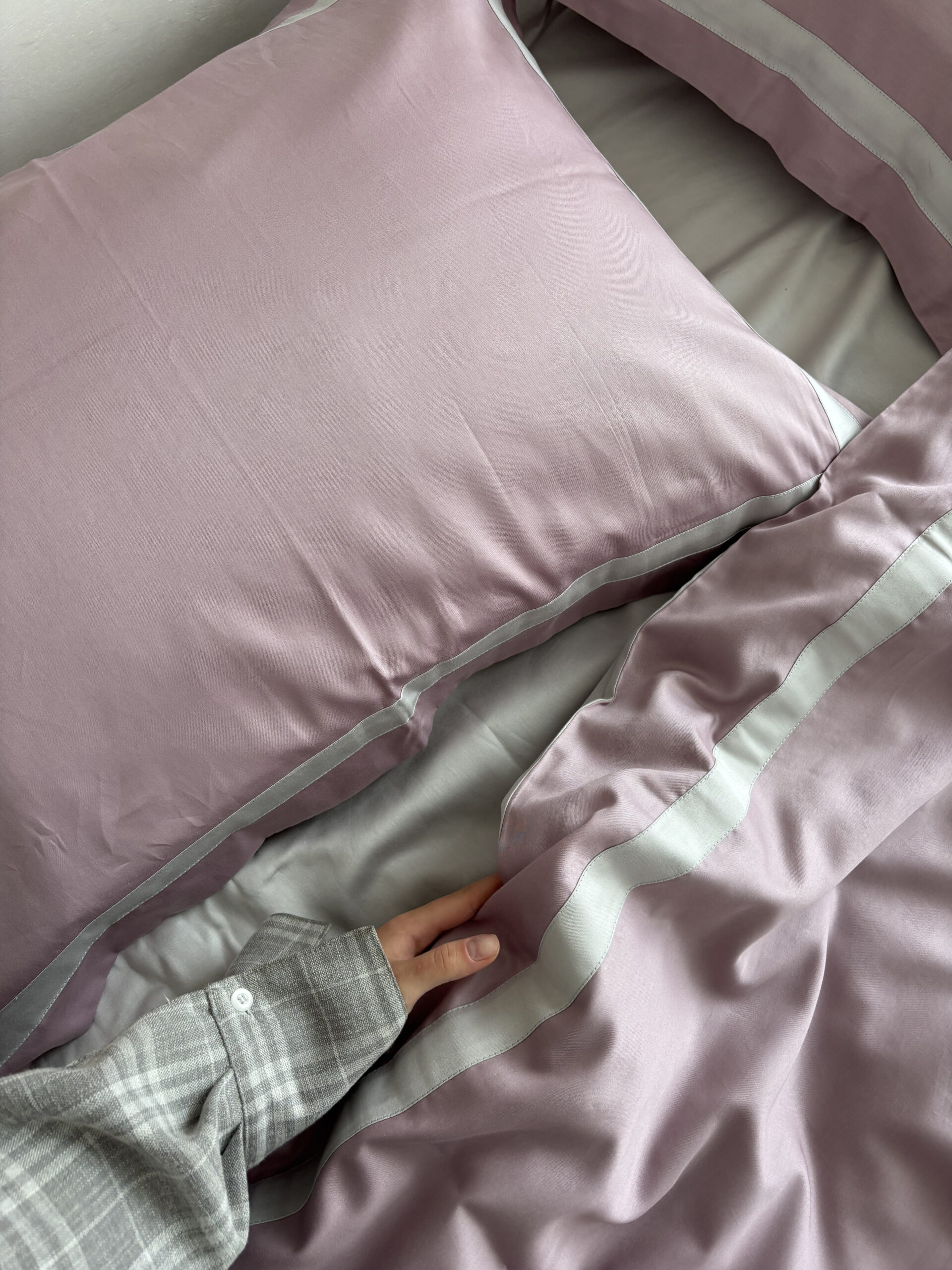 Постіль сатин преміальний (Сіро-ліловий у поєднанні із світло сірим)