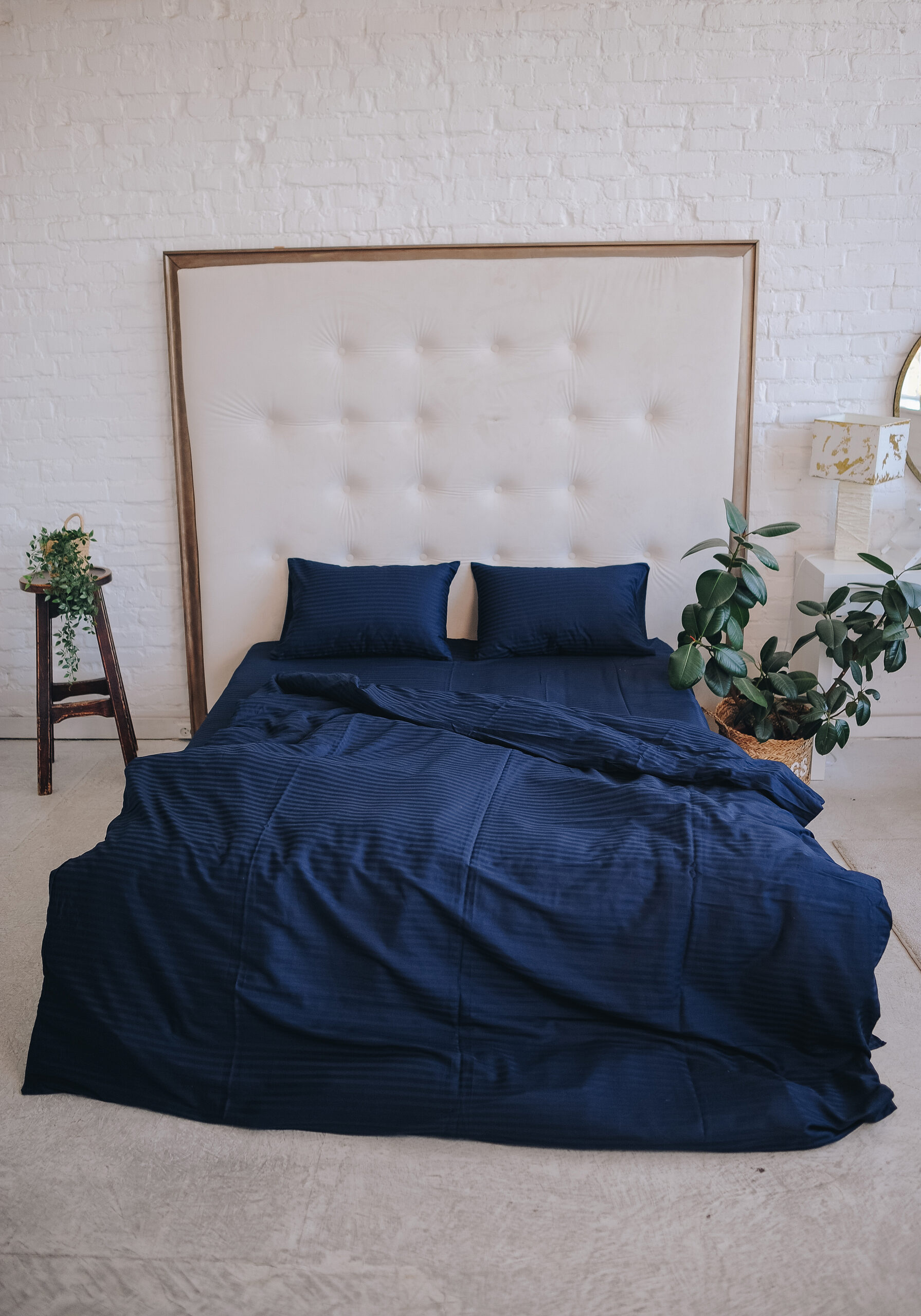 Постіль страйп сатин однотонний (Відтінок Темно-синій)